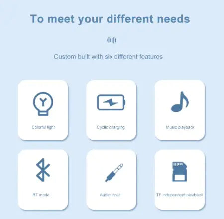 • Easy-to-Use Controls: Simple controls for adjusting the light colors, sound volume, and Bluetooth connection, offering a user-friendly experience.